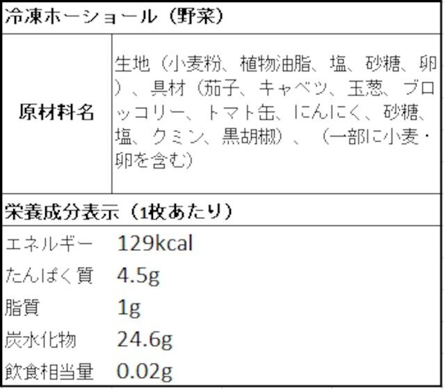 「野菜」ナス、ブロッコリ、トマト、玉葱、キャベツ、クミン(無添加)、サラダ油、砂糖、にんにく、黒胡椒